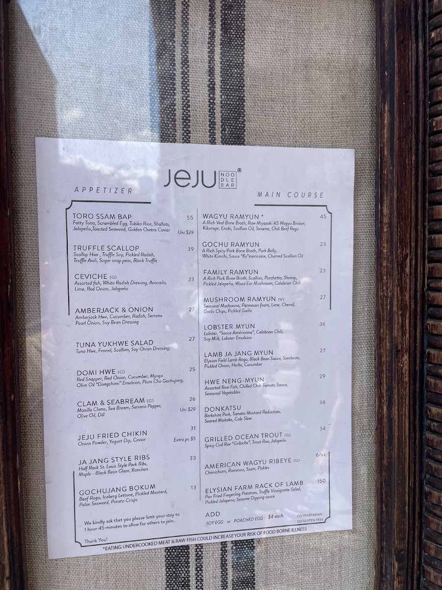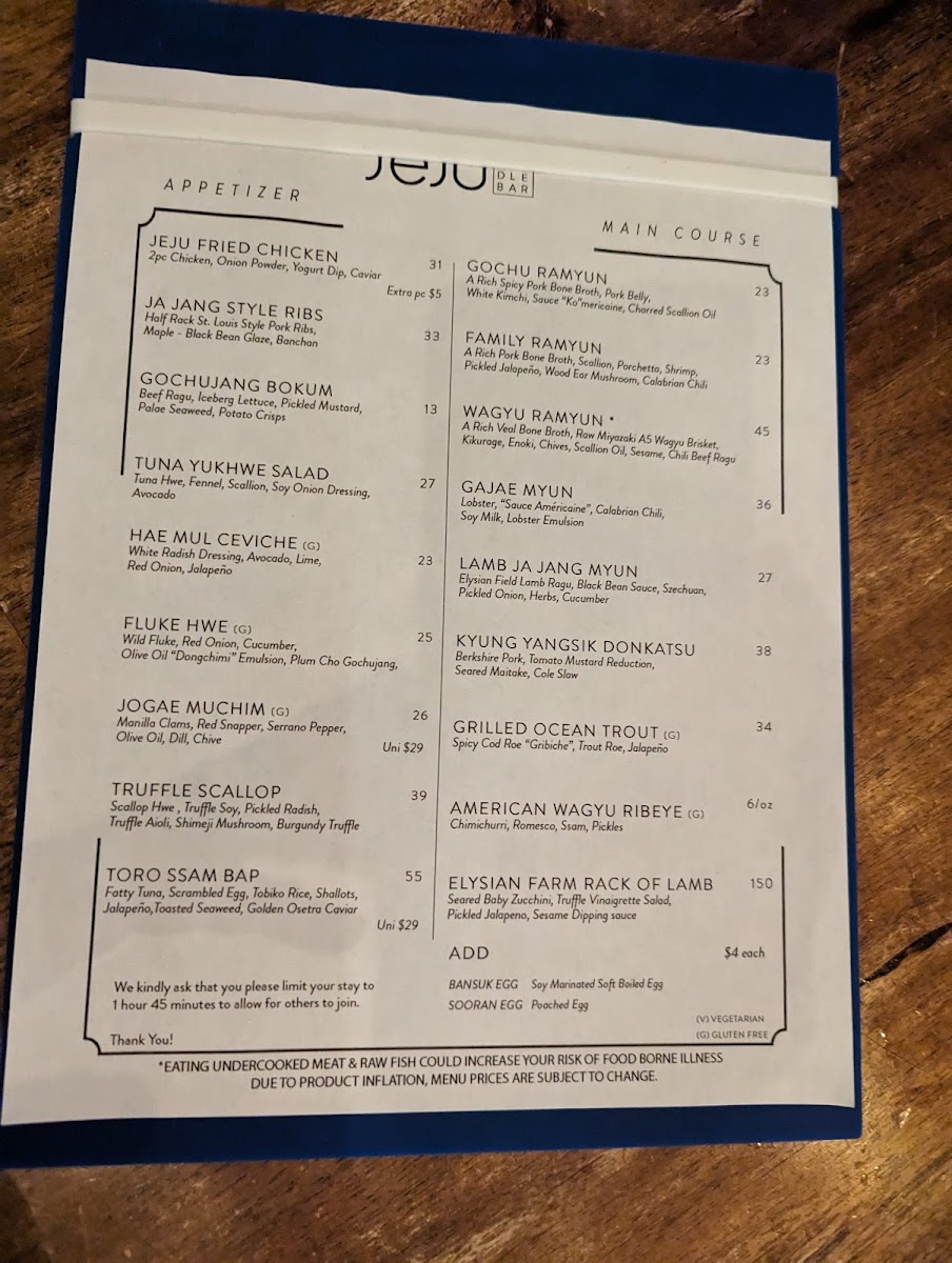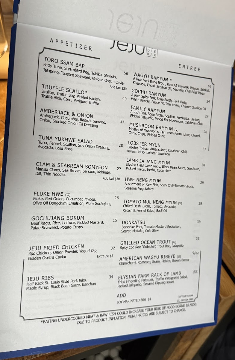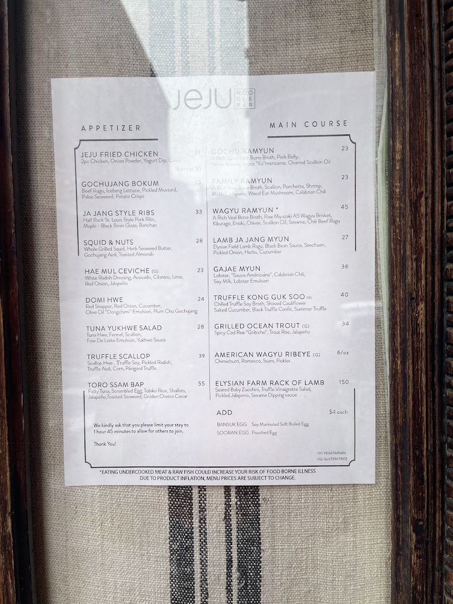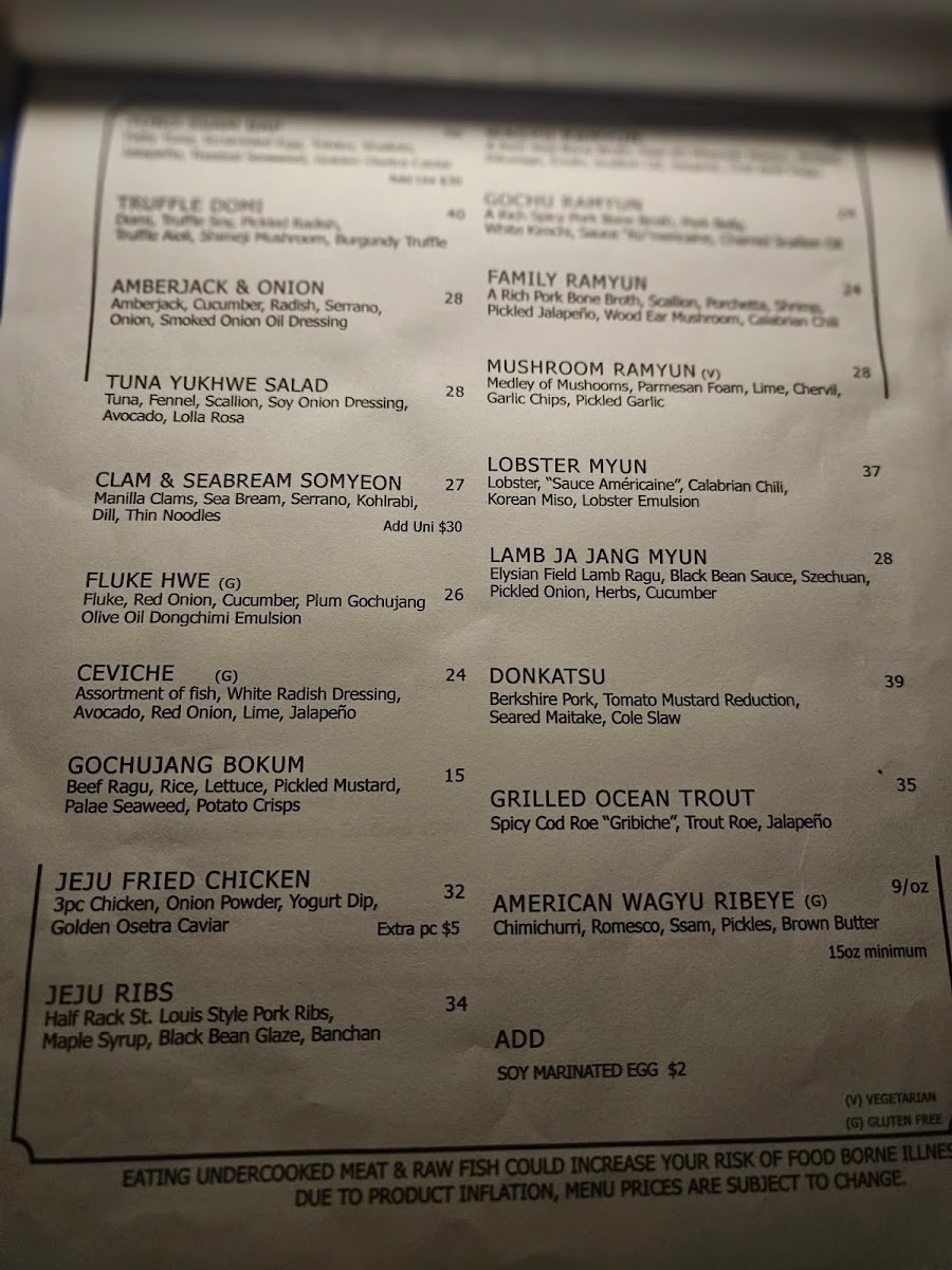 A Rich Spicy Pork Bone Broth, Pork Belly, White Kimchi, Sauce "Ko"mericaine, Charred Scallion Oil